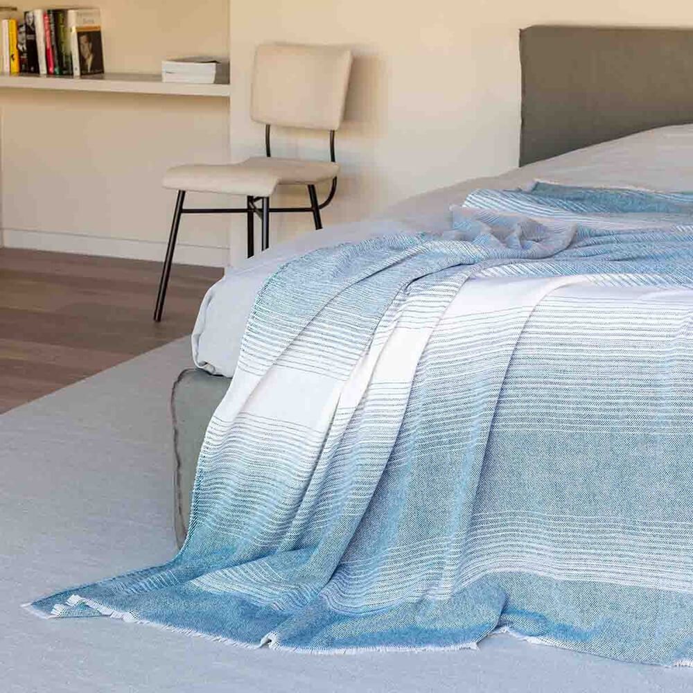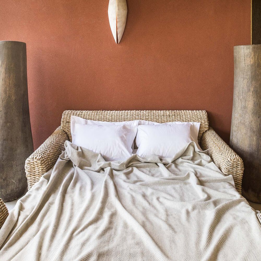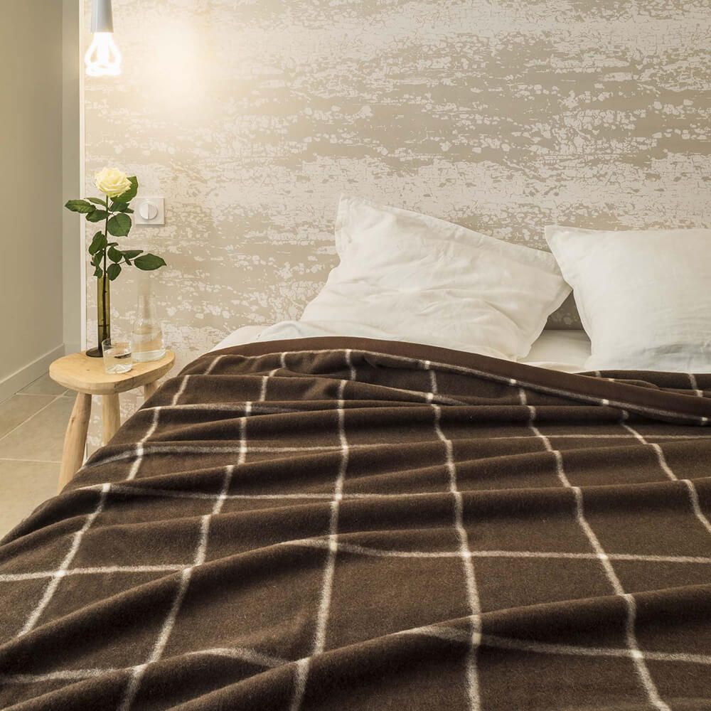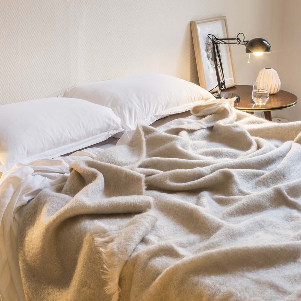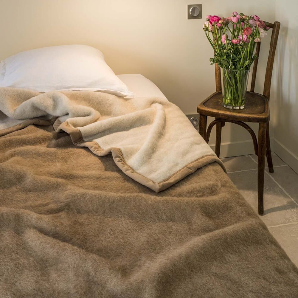 Enveloppante, procurant une chaleur douillette et une douceur incomparable au toucher, elle est tissée en double-face dans des coloris uniquement naturels, sans teinture.